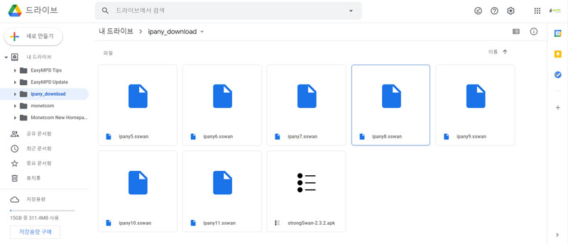 StrongSwan에 VPN 접속서버를 등록해주는 설정 파일도 다운 받습니다. IPany은 여러개의 접속서버를 제공합니다. 여러 서버를 등록하여 상황에 따라 서버를 변경해가며 접속할 수 있으니 가능하면 모든 설정파일을 다운받습니다.