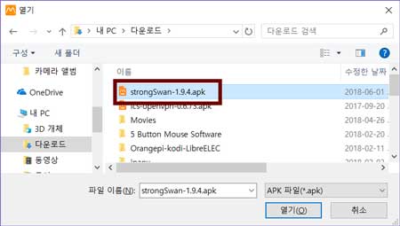 StrongSwan APK 설치 파일을 PC에서 다운 받고, 모모앱플레이어에의 "APK 설치" 버튼을 클릭하여 PC에 저장된 APK 파일(strongSwan-xxxx.apk)을 선택해 설치할 수 있습니다.