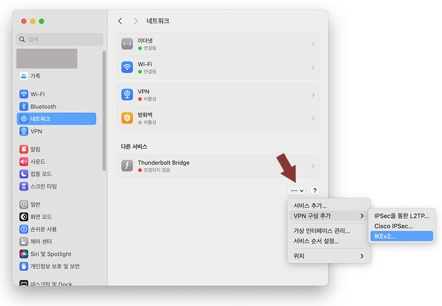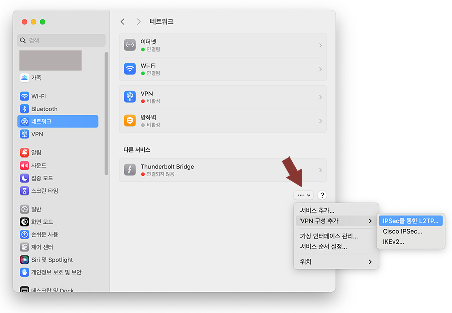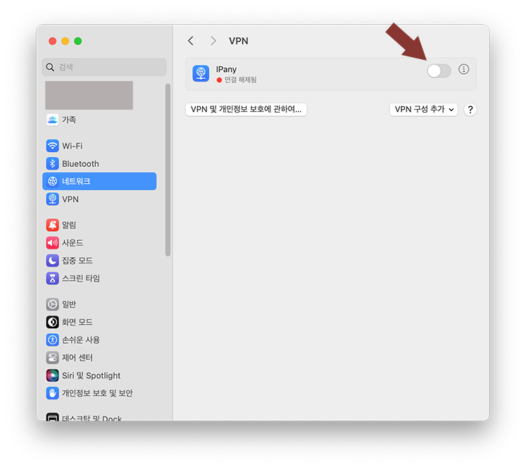 "시스템 설정"에서 네트워크 > VPN로 이동합니다.