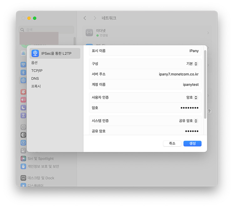 MAC OS X에서는 L2TP/IPsec 접속 기능이 자체 내장되어있어 별도의 앱을 설치하지 않고도 간단한 설정만으로 VPN 접속이 가능합니다.
