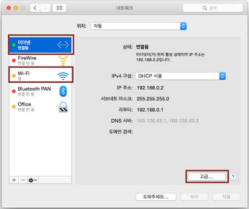 MAC OS X에서 DNS 서버를 한국 DNS 서버로 변경하는 방법입니다.