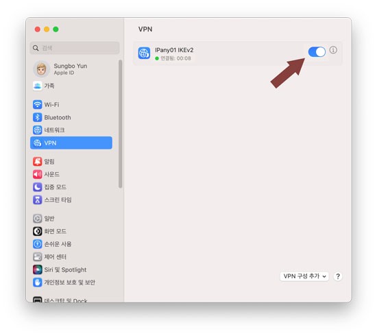 MAC OS X에는 Sierra 버전 부터 IKEv2 VPN 접속 기능이 내장되어 있어 별도 프로그램 설치없이 VPN 접속이 가능합니다.
