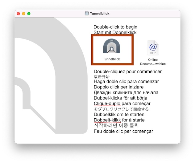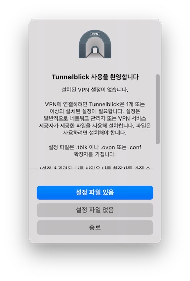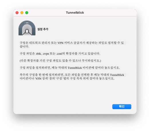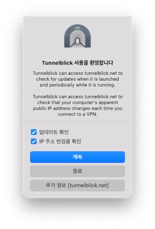 Tunnelblick 아이콘을 더블 클릭하여 프로그램을 설치합니다.