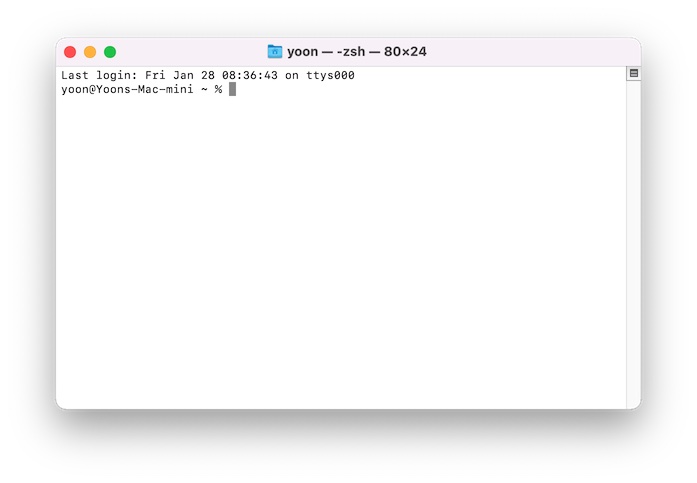 Command + Space (Spotlight 검색)에서 "터미널"을 입력해 터미널을 열어줍니다.