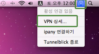VPN 연결 로그를 확인하여 접속 실패 원인을 확인할 수 있습니다. 로그를 확인하려면 메뉴 막대의 Tunnelblick 아이콘을 클릭하고 "VPN 상세"를 선택합니다.