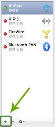 3 "네트워크" 좌측 창 아래에 "+"를 클릭합니다.