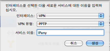 OS X Sierra 버전부터는 PPTP 방식 접속이 가능하지 않습니다. Sierra 이상 버전을 사용 중이라면 IKEv2 방법을 이용하세요.
