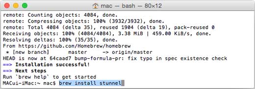 5 "Homebrew"와 "Stunnel"은 "터미널"에서 설치할 수 있습니다.